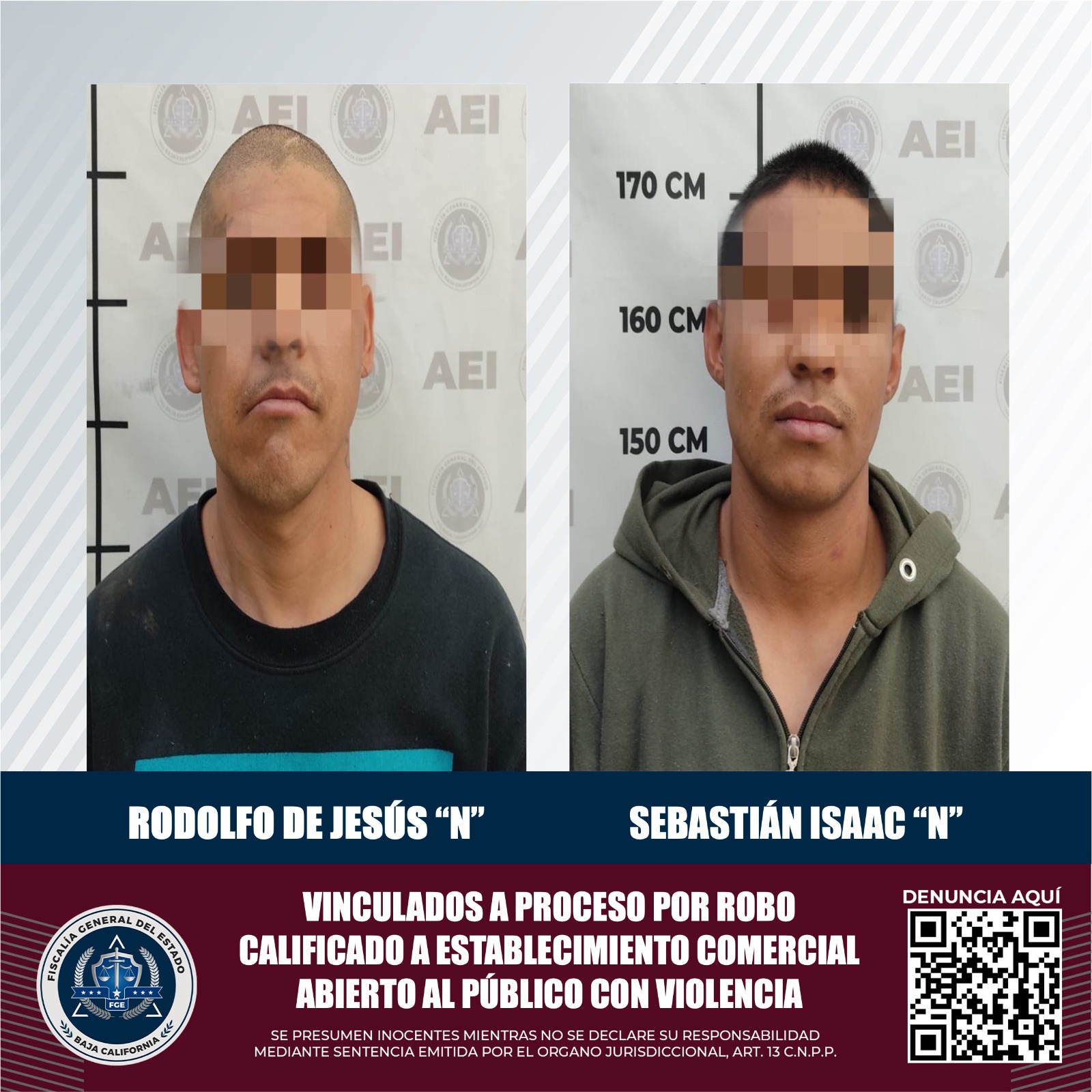MEXICALI, B.C. Tras el violento robo registrado a un establecimiento, la Fiscalía Regional de Mexicali, presentó ante un juez pruebas contundentes para que se determinara fueran vinculados a proceso José Luis “N”, Sebastián Isaac “N” y Rodolfo de Jesús “N”, por su presunta comisión del hecho en cuestión.