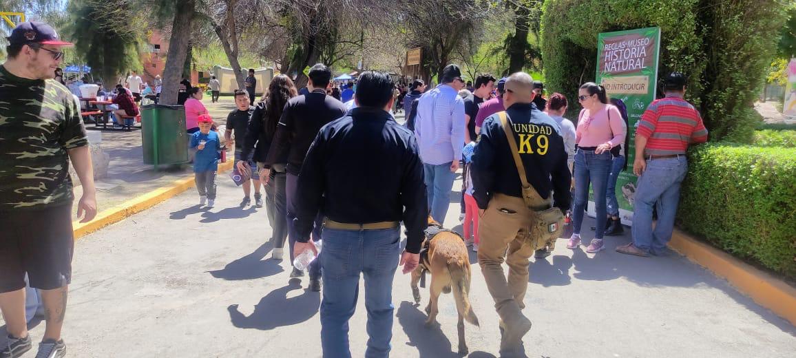 En Mexicali dijo, se participa activamente en el evento de Semana Santa en el bosque y zoológico de la ciudad, donde como apoyo en la supervisión de las instalaciones, se contó con la colaboración de la Unidad Canina K9 con los elementos Logan y Broxon.