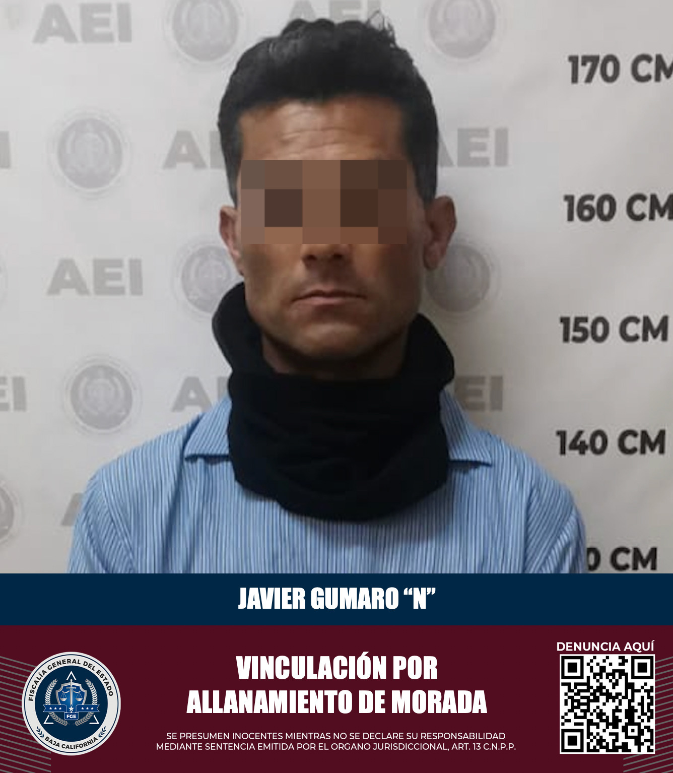 Por este motivo, el agente del Ministerio Público presentó datos de prueba en su contra por el delito de allanamiento de morada, logrando que el Juez de Control determine auto de vinculación a proceso y medida cautelar de prisión preventiva.