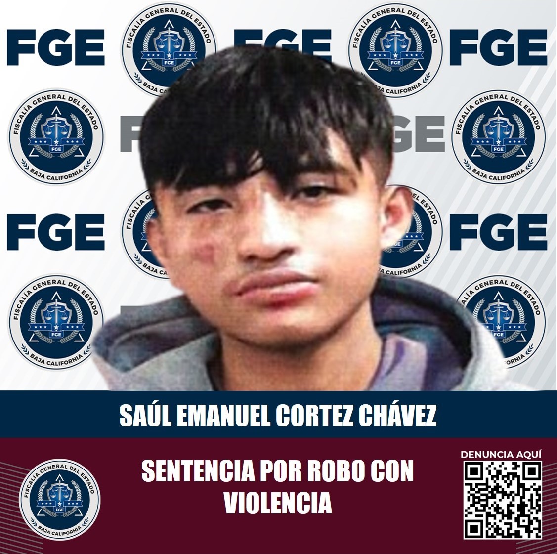 TIJUANA, B.C. Por su plena responsabilidad en el delito de robo calificado ejecutado con violencia, Saúl Emanuel Cortez Chávez fue sentenciado a 5 años 4 meses de prisión, una vez que la Fiscalía Regional de Tijuana acreditó con pruebas sólidas su participación en un hecho delictivo sucedido en marzo de 2022.