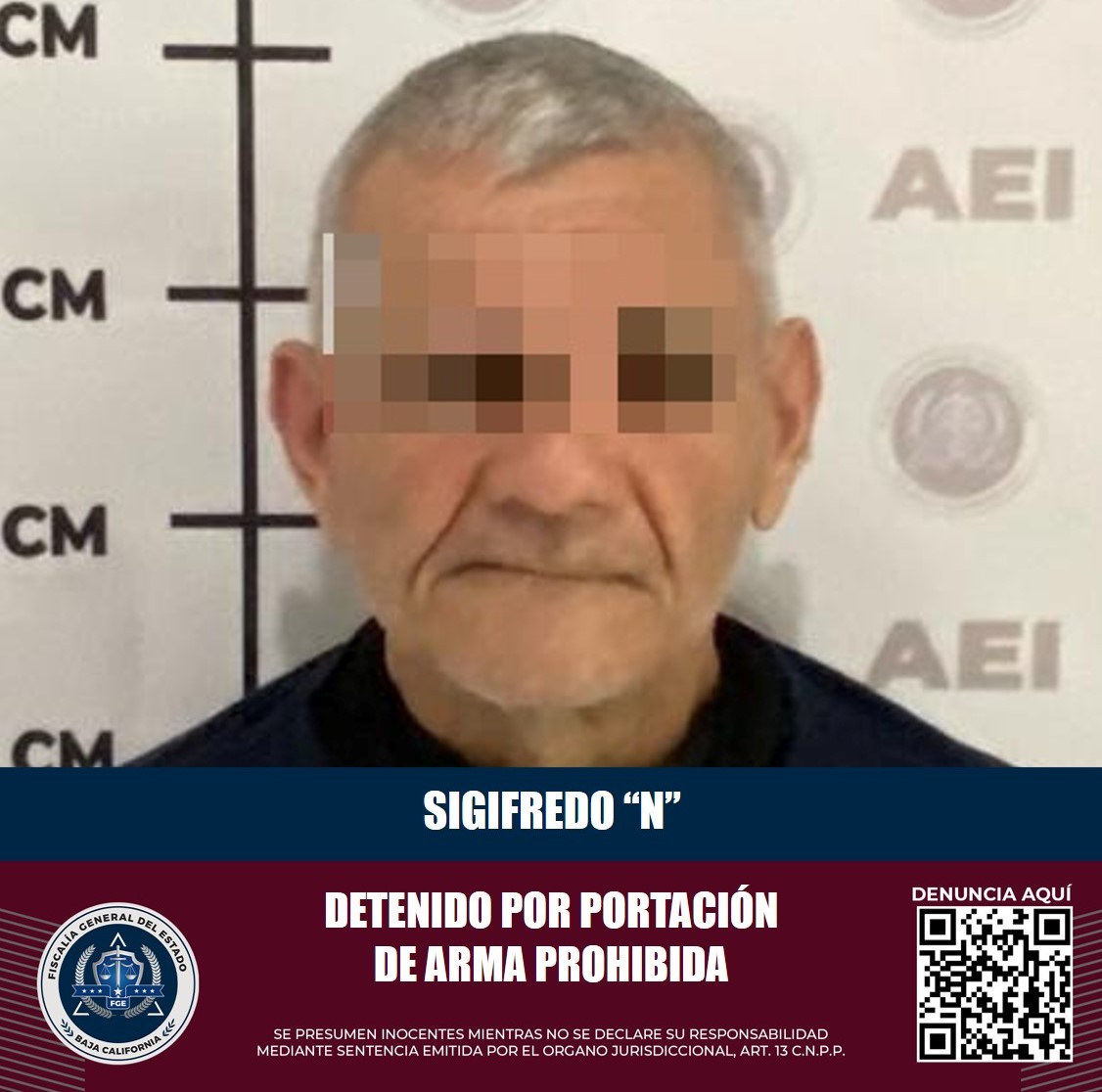 Cabe destacar que durante el operativo se detuvo a una persona que responde al nombre de Sigifredo “N”, quien contaba con una orden de aprehensión activa por el ilícito de portación de arma prohibida en el municipio de Ensenada, quien una vez arrestado fue entregado a la Unidad de Aprehensiones de dicho municipio para el seguimiento de la investigación.