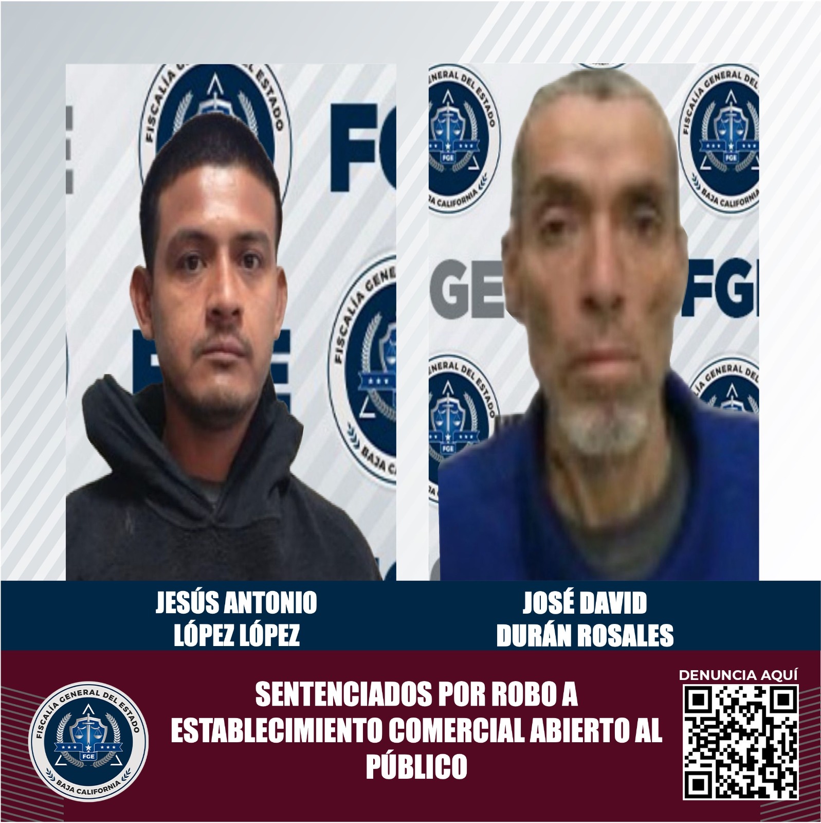 MEXICALI, B.C. La Fiscalía General del Estado obtuvo sentencias condenatorias, en audiencias por separado, contra dos hombres que cometieron el delito de robo calificado a comercio abierto al público con violencia.