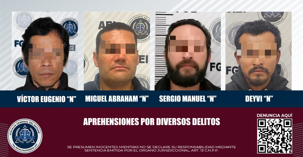 TIJUANA, B.C. Mandatos judiciales por pederastia, robo de vehículo, incumplimiento de las obligaciones de asistencia familiar y uso de vehículo de motor con placas de circulación de vehículo de motor robado, fueron cumplimentados por agentes estatales de investigación de la Fiscalía General del Estado, con base en trabajo desarrollado en gabinete y campo.