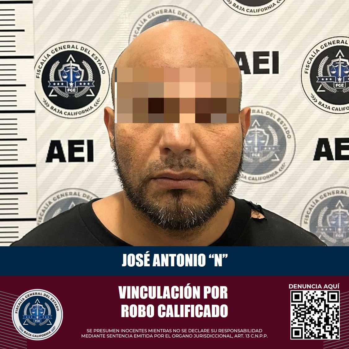 TIJUANA, B.C. La Fiscalía Regional de Tijuana, a través del agente del Ministerio Público, obtuvo la vinculación a proceso de José Antonio "N" por el delito de robo calificado a comercio abierto al público ejecutado de noche en agravio de un supermercado de la ciudad.