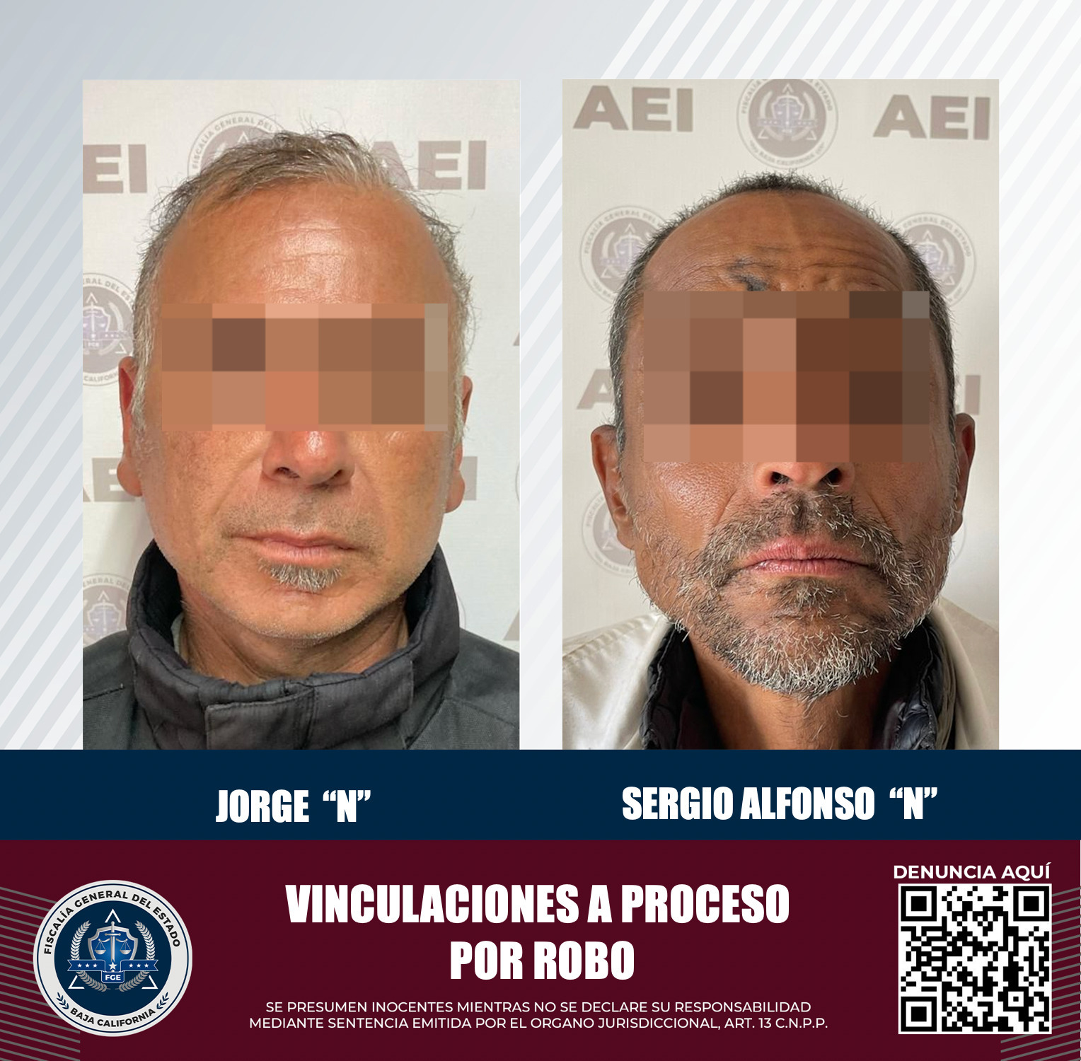 ENSENADA, B.C. La Fiscalía Regional de Ensenada, a través de la Unidad de Investigación de Robos, logró la vinculación a proceso de dos individuos en hechos delictivos cometidos en la localidad.