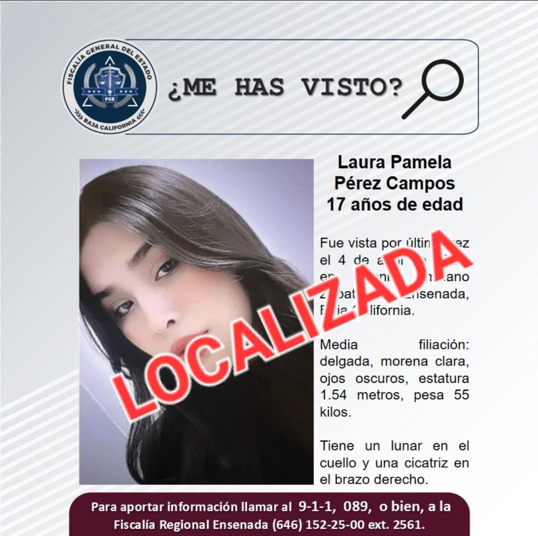 Por lo anterior, la FGE cancela las pesquisas generadas para la localización de Laura Pamela Pérez Campos, de 17 años, y Julio Leonel Arias Ayala, de 16 años de edad.