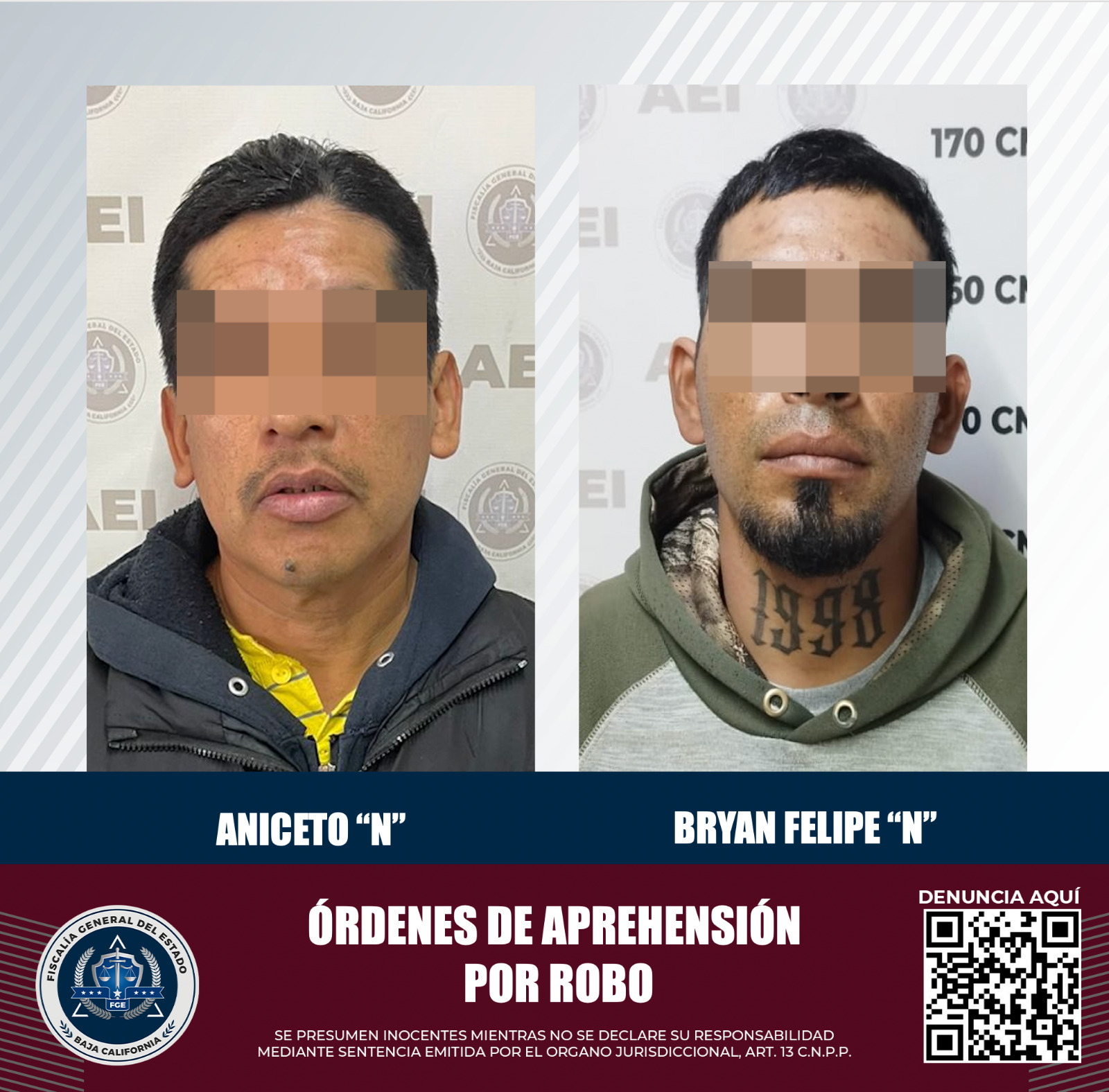 ENSENADA, B.C. Agentes Estatales de Investigación, de la Fiscalía General del Estado, cumplimentaron órdenes de aprehensión contra dos individuos presuntamente implicados en incidentes de robo.