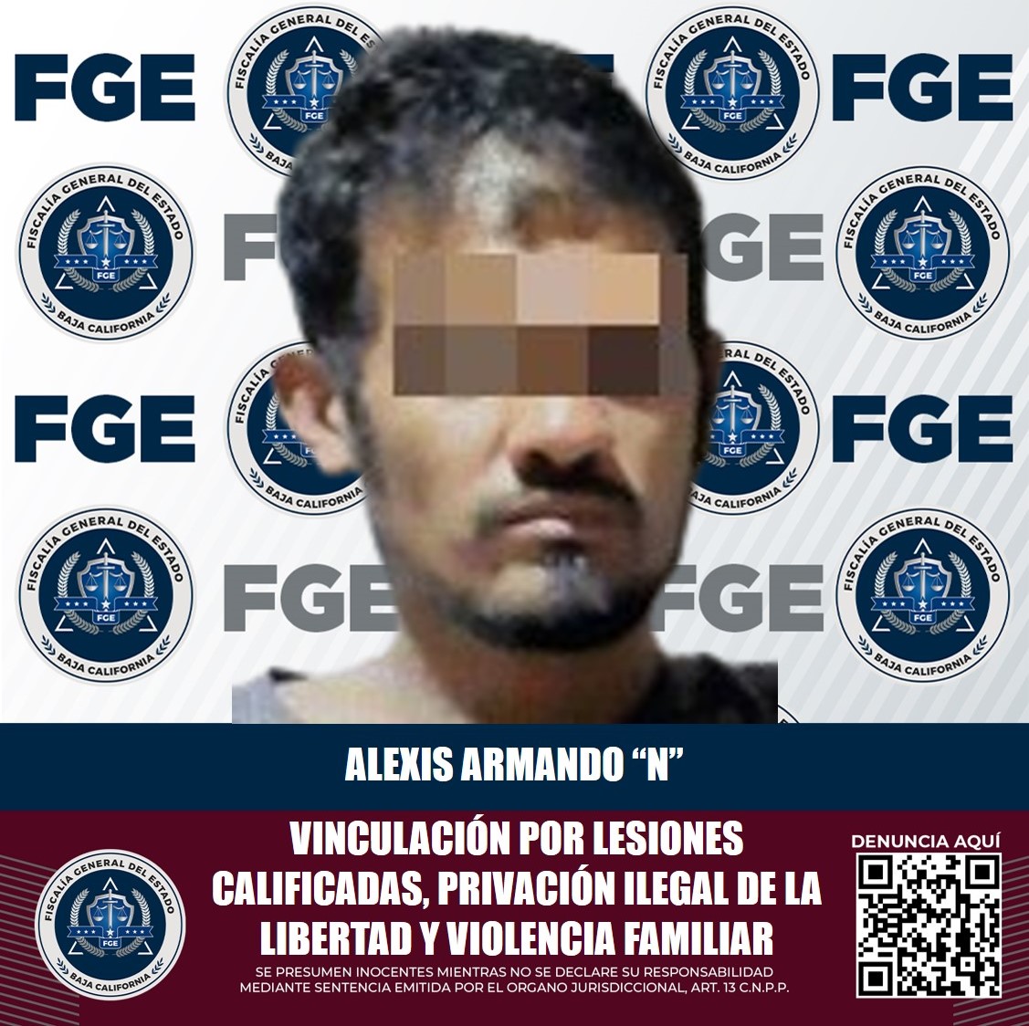 TIJUANA, B.C. La Fiscalía Regional de Tijuana, a través de los datos de prueba presentados ante un juez, obtuvo auto de vinculación a proceso en contra de Alexis Armando “N”, por los delitos de lesiones calificadas agravadas por razón de parentesco, privación ilegal de la libertad agravada y violencia familiar.