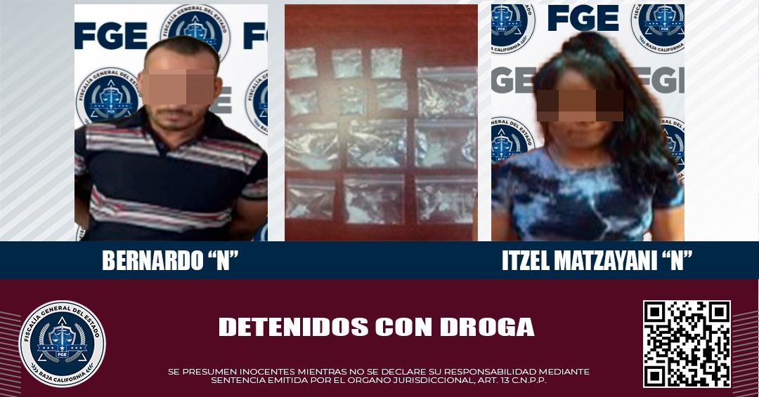 MEXICALI, B.C. La Fiscalía General del Estado (FGE), continúa en el combate frontal a la venta de droga, logrando durante la cumplimentación de órdenes de cateo, asegurar a un hombre y a una mujer en posesión de dosis de droga.