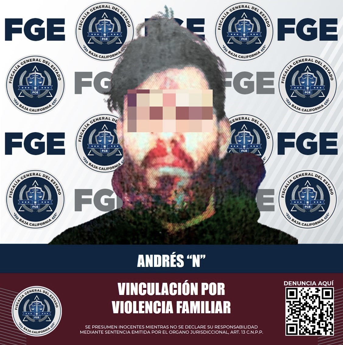 TECATE, B.C. La Fiscalía Regional de Tecate informa que, como resultado de los datos de prueba presentados por el agente del Ministerio Público en la audiencia de vinculación, Andrés "N" quedó sujeto a proceso penal por su presunta participación en el delito de violencia familiar.