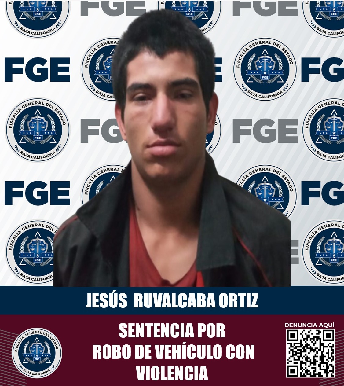 TIJUANA, B.C. Elementos de prueba recabados por la Fiscalía Regional de Tijuana, a través de la Unidad de Investigación de Robo de Vehículos, permitieron obtener una sentencia condenatoria de 5 años 4 meses de prisión para Jesús Ruvalcaba Ortiz, responsable del delito de robo de vehículo con violencia.