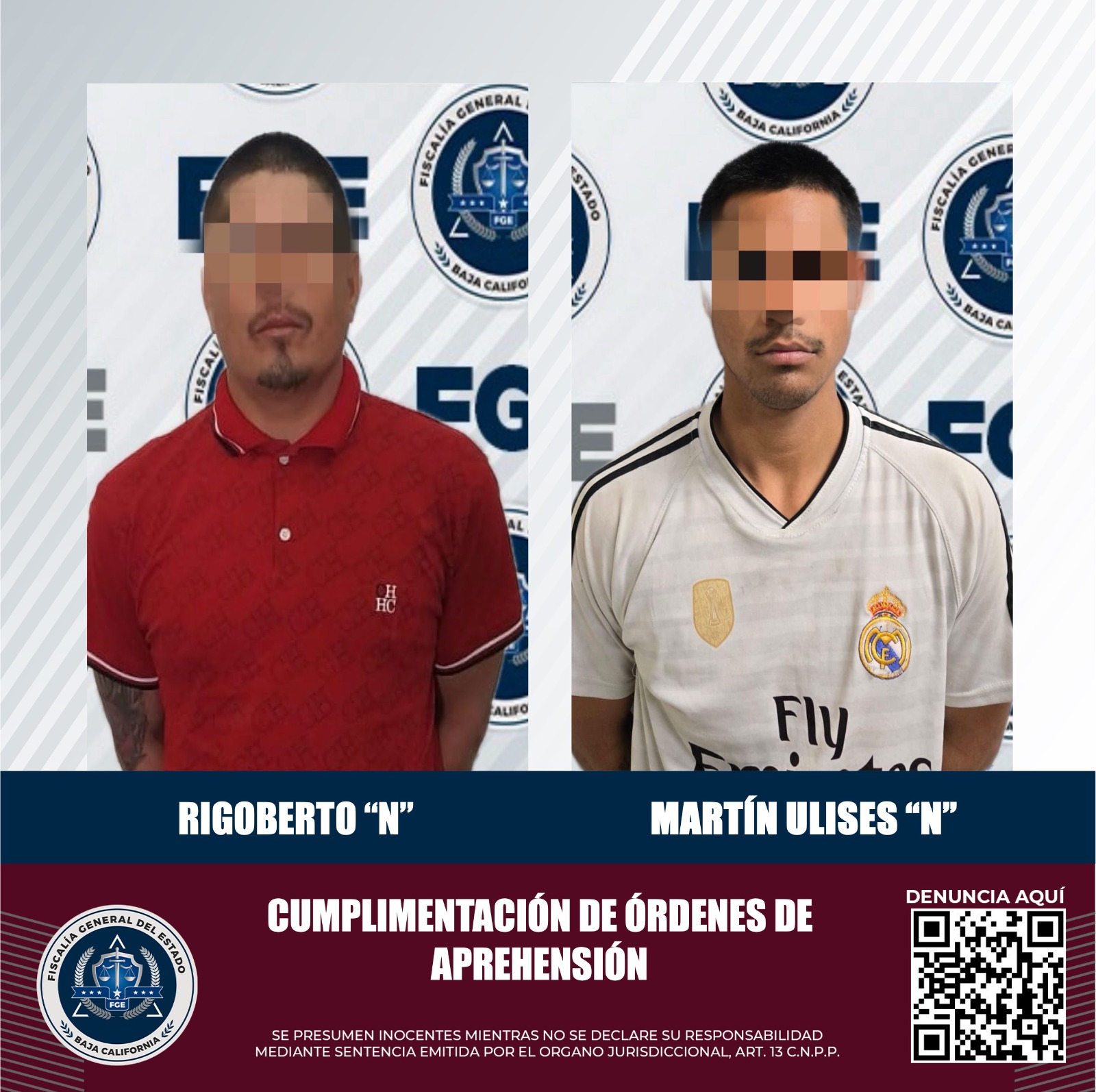 Estas detenciones se realizan por elementos pertenecientes a la Agencia Estatal de Investigación de la Fiscalía General del Estado, fortaleciendo resultados en la labor de persecución del delito, mediante métodos de investigación para esclarecer los hechos, buscando que los responsables sean procesados ante la justicia y no dejar impune los delitos que laceren la integridad de los bajacalifornianos.