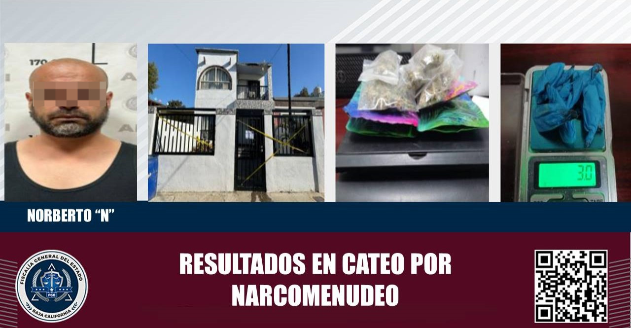 ENSENADA, B.C. En el marco de investigaciones por el delito de narcomenudeo, la Fiscalía General del Estado ejecutó una orden de cateo en una vivienda localizada en el fraccionamiento México.