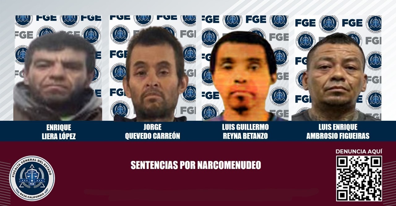 TIJUANA, B.C. La Fiscalía General del Estado informó que en cuatro diferentes asuntos por narcomenudeo, igual número de imputados recibieron sentencia por su responsabilidad en esta modalidad de delito contra la salud.