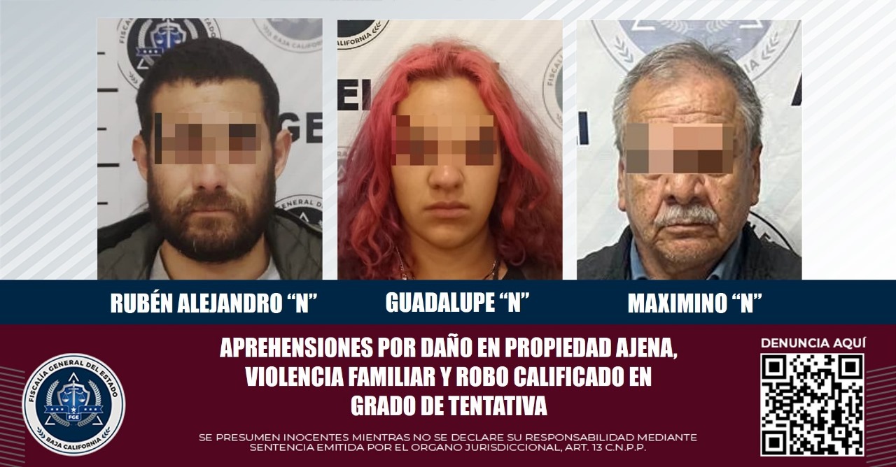 La tercera detención se llevó a cabo contra Maximino "N" en el bulevar Díaz Ordaz y calle Benton de esta ciudad. Ya que contaba con una orden de aprehensión por el delito de violencia familiar en la vertiente física y psicológica, bajo el expediente número 02817/2024.