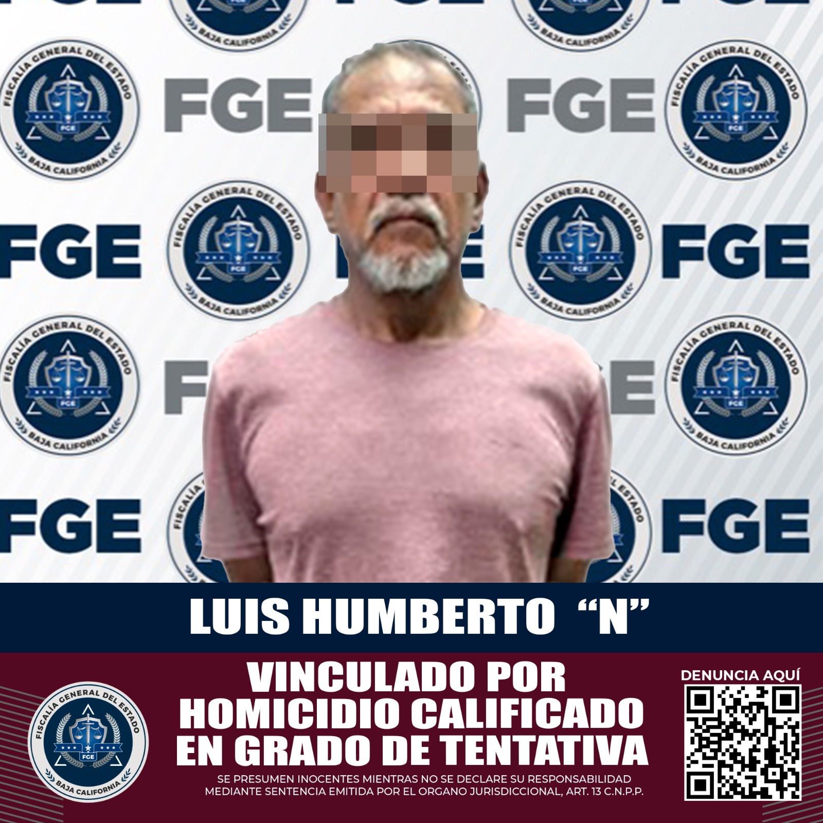 MEXICALI, B.C. La Fiscalía General del Estado (FGE), logró con base en los elementos probatorios presentados, la vinculación a proceso de Luis Humberto “N” por su presunta responsabilidad en el delito de homicidio calificado en grado de tentativa.