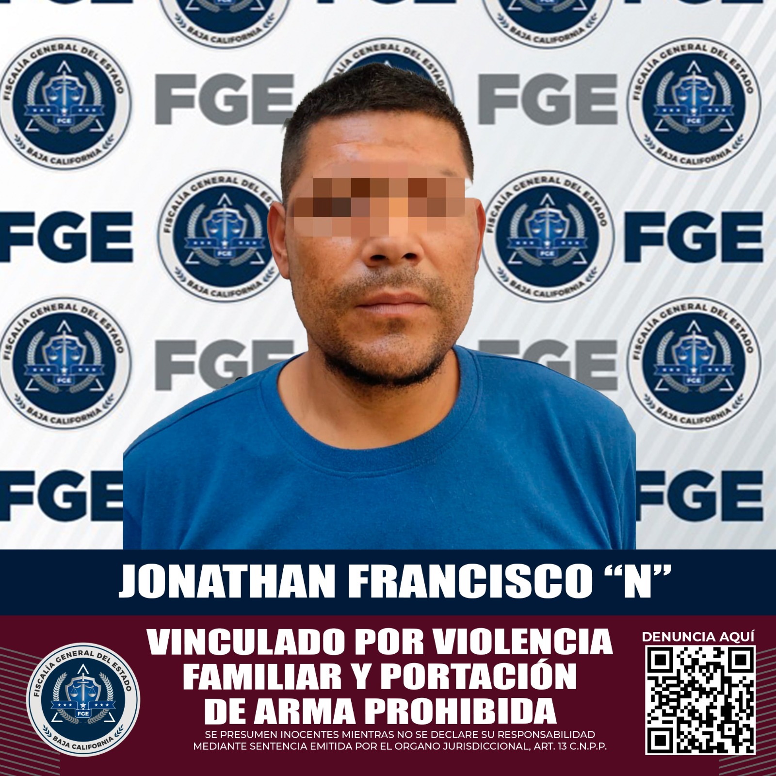MEXICALI, B.C. La Fiscalía Regional de Mexicali, a través de la Unidad de Investigación con Detenidos Poniente, obtuvo la vinculación a proceso de un acusado por el delito de violencia familiar y portación de arma prohibida.