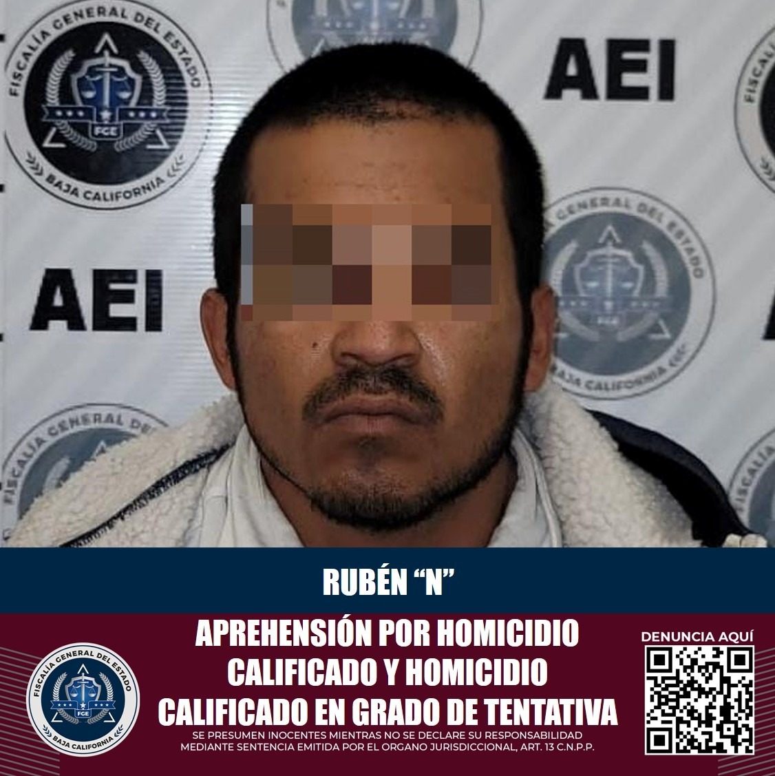 TIJUANA, B.C. Un sujeto señalado como presunto partícipe en los delitos de homicidio calificado y homicidio calificado en grado de ejecución de tentativa, fue capturado por elementos de la Agencia Estatal de Investigación (AEI) en Tijuana, de la Fiscalía General del Estado, por contar con una orden de aprehensión en su contra, se trata de Rubén “N”, alias “El Sikis”.