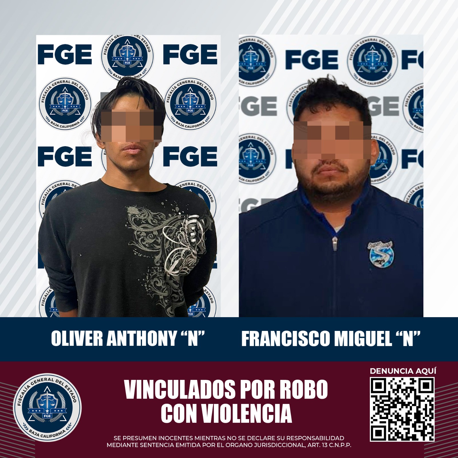 MEXICALI, B.C. Por su presunta participación en el delito de robo calificado a establecimiento comercial, dos hombres fueron vinculados a proceso con base al trabajo realizado por la Fiscalía Regional de Mexicali, a través de la Unidad de Investigación de Robos Oriente.