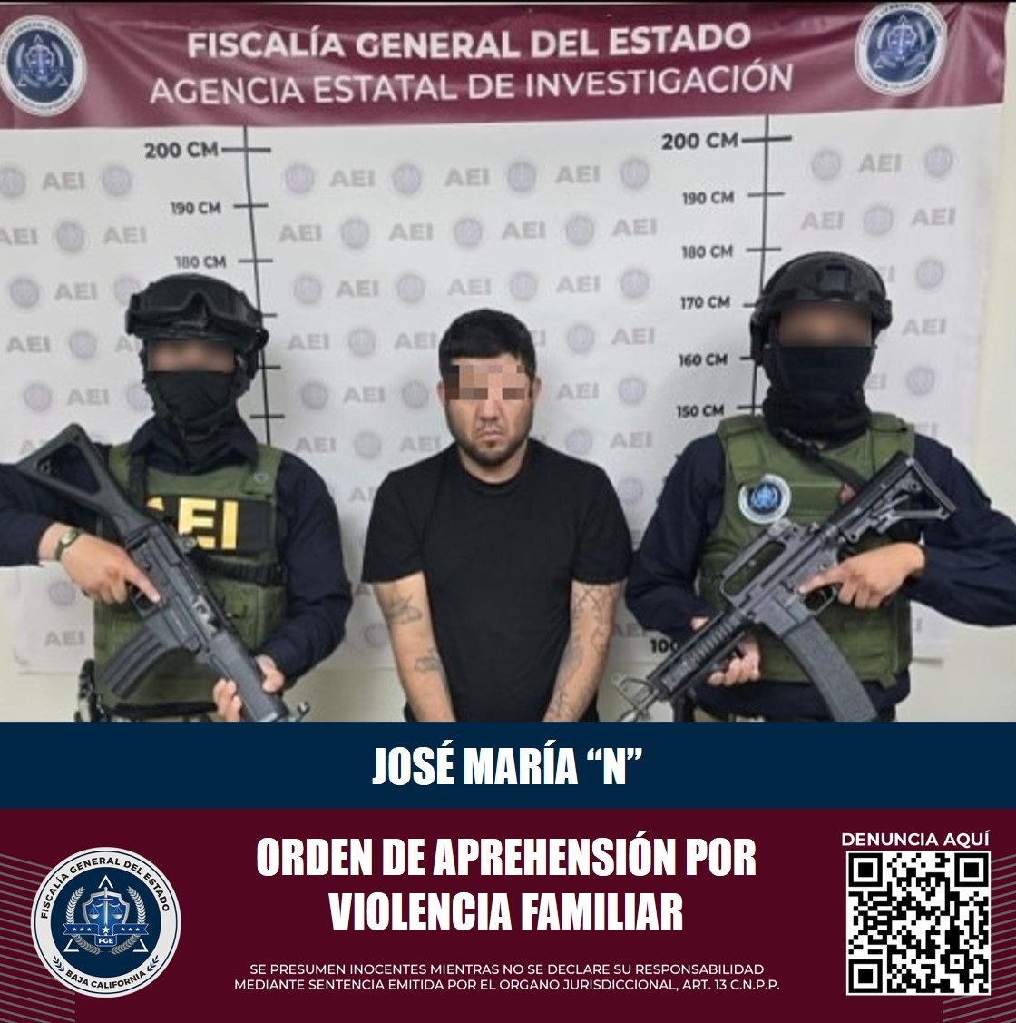 En tanto, la Fiscal Especializada en Delitos Contra Mujeres por Razón de Género, mencionó la captura de José María "N", acusado de violencia familiar. La detención se produjo después de que el imputado amenazara a su ex pareja el pasado 10 de abril de 2024, en Residencial San Jorge en Tecate, habría dejado una manta blanca con letras negras y azules como amenaza.