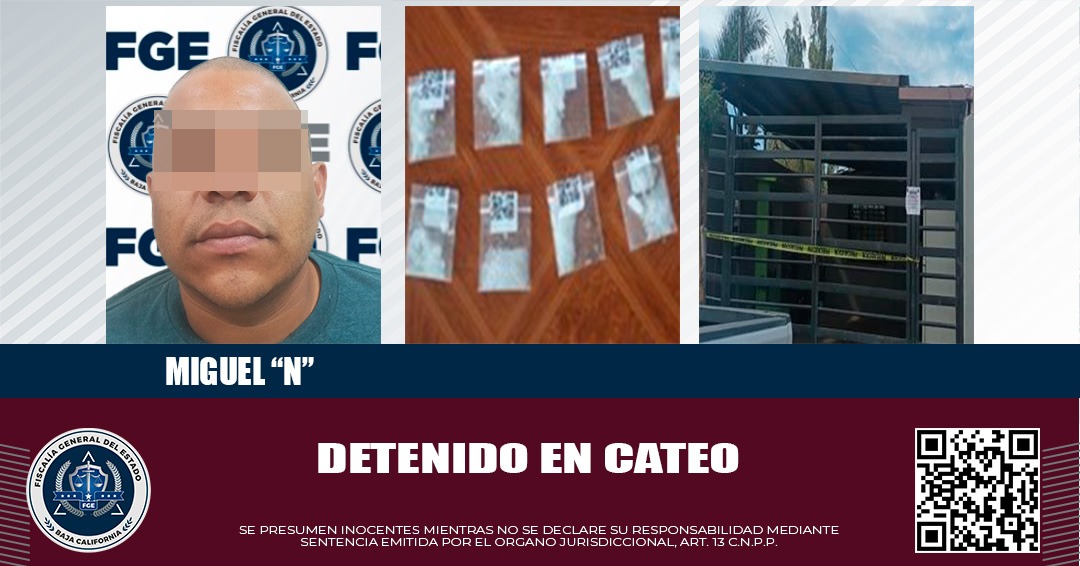 MEXICALI, B.C. Elementos de la Fiscalía General del Estado (FGE) ejecutaron un cateo, en donde lograron el aseguramiento de un hombre con varias dosis de droga sintética.