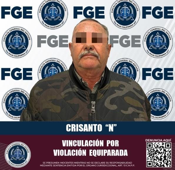 SAN QUINTÍN, B.C. La Fiscalía General del Estado (FGE), logró vinculación a proceso en contra de Crisanto “N”, quien presuntamente, cometió el delito de violación equiparada en contra de una menor de edad.