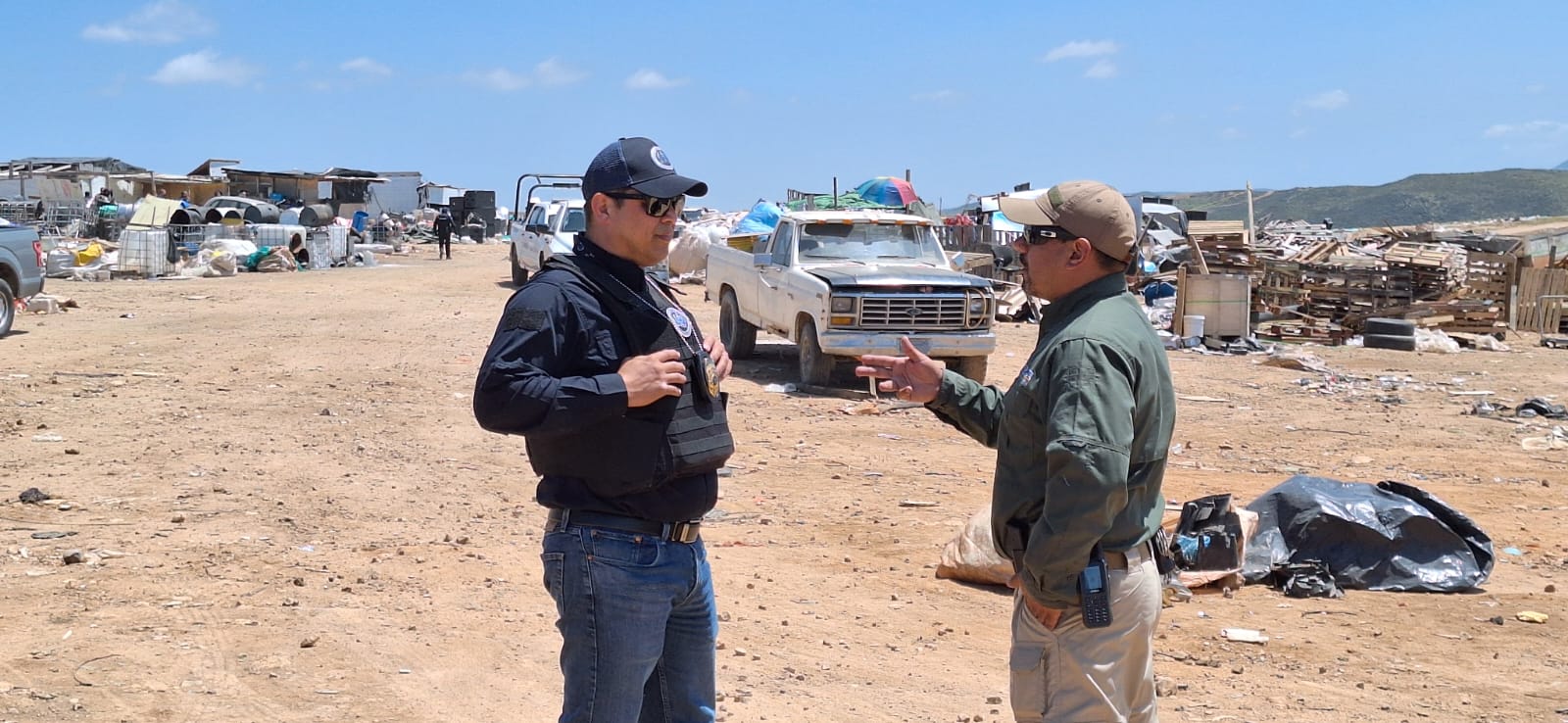 PLAYAS DE ROSARITO, B.C. Con el objetivo de fortalecer la prevención en las colonias aledañas al relleno sanitario de la ciudad de Playas de Rosarito, personal operativo de la Fiscalía General del Estado y de la Secretaría de Seguridad Ciudadana llevaron a cabo un trabajo coordinado de prevención y disuasión en las tres entradas al área.