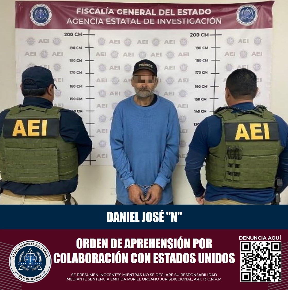 TECATE, B.C. La Agencia Estatal de Investigación (AEI) en Tecate logró la captura de Daniel José “N”, de 48 años de edad, originario del estado de California y quien era buscado por las autoridades estadounidenses por el delito de robo a casa.