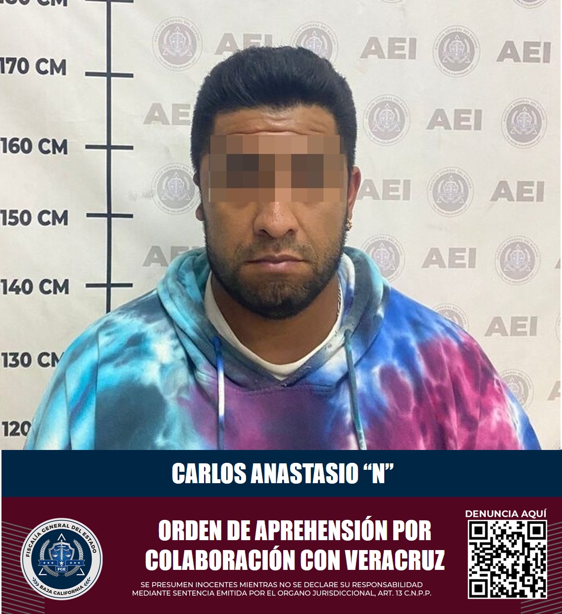 Una vez aprehendido por agentes de la Fiscalía de Baja California, a Carlos Anastasio, de 36 años de edad, se le hizo de conocimiento el motivo de la captura y se le leyeron sus derechos constitucionales que le asisten como persona detenida, en tanto avanzan las diligencias correspondientes para su traslado a Veracruz y su puesta a disposición de la autoridad que lo requiere.
