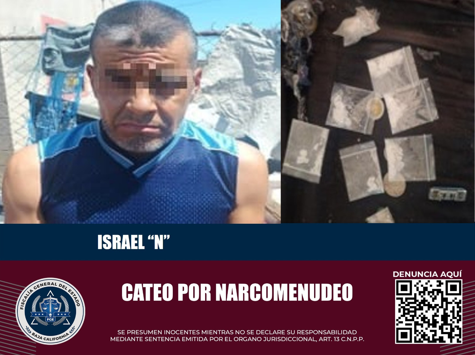 MEXICALI, B.C. En seguimiento a la estrategia de seguridad implementada por la Fiscalía General del Estado (FGE) para combatir la distribución y venta de droga, se llevó a cabo un cateo que resultó en el decomiso de diversas dosis de estupefacientes y la detención de una persona.