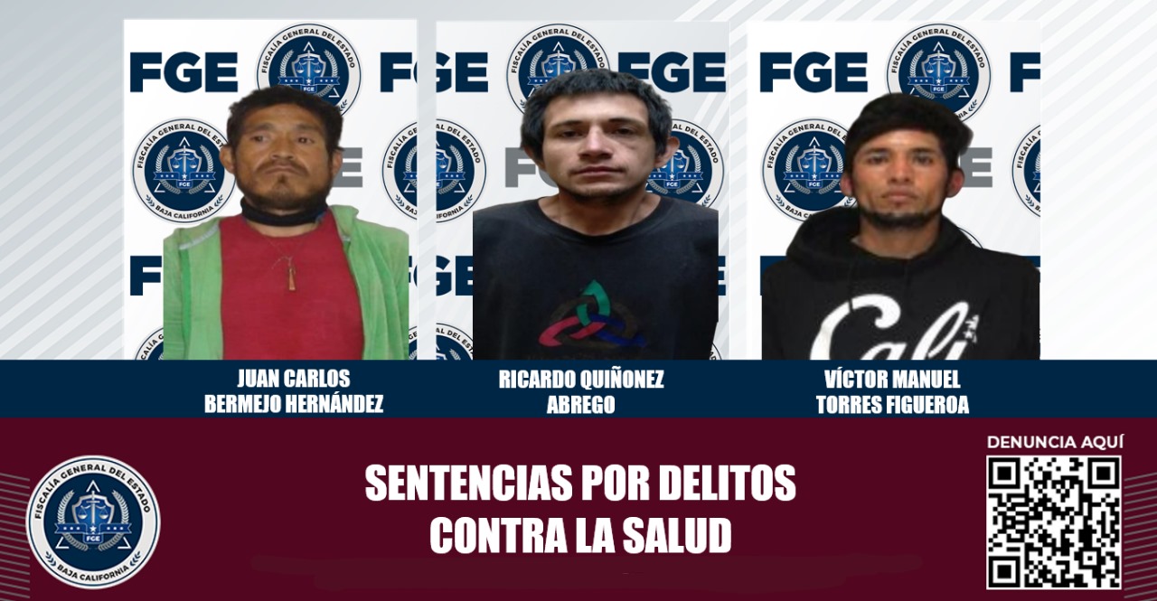TIJUANA, B.C. La Fiscalía General del Estado informó que tres individuos fueron sentenciados por su participación en delitos relacionados con el narcomenudeo.