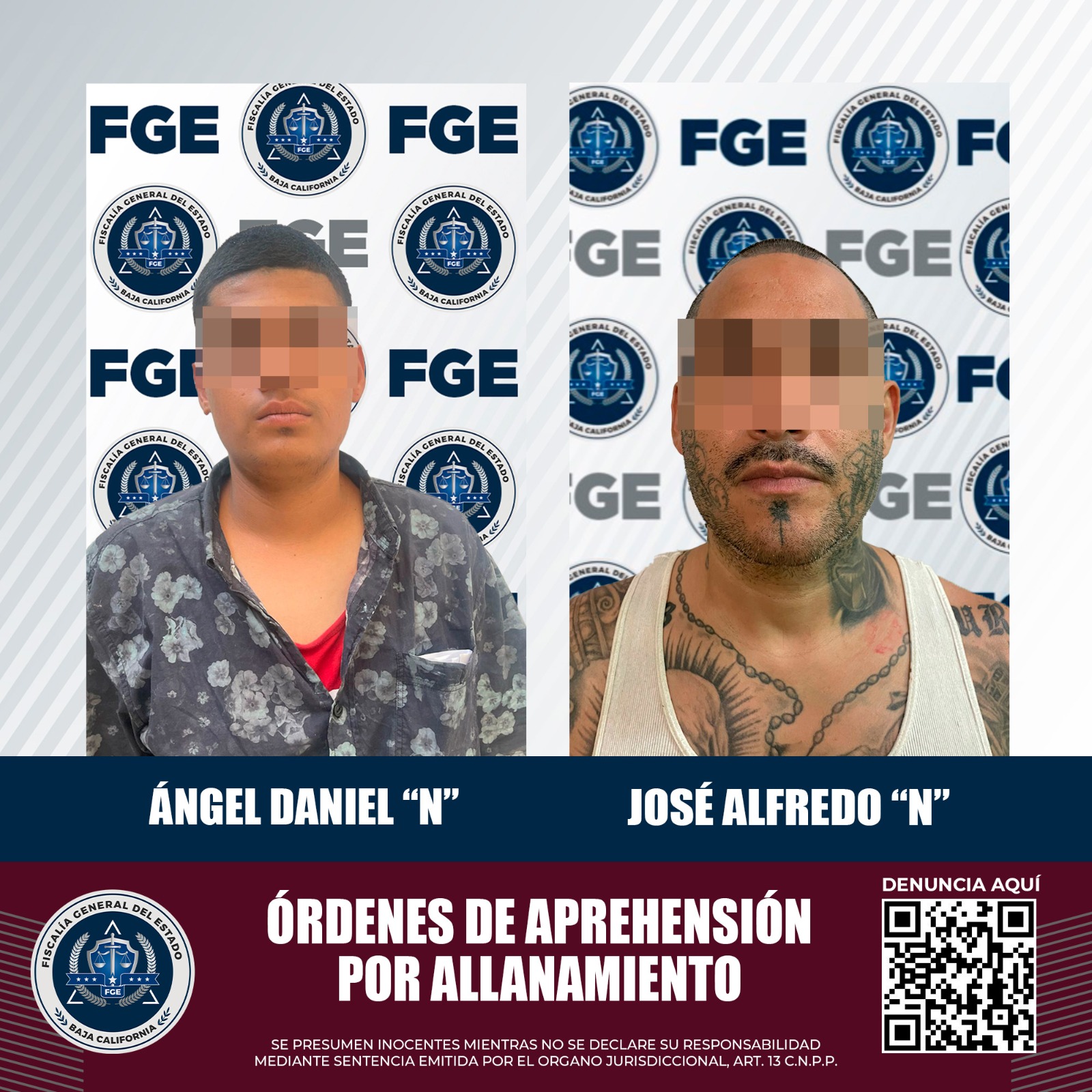 MEXICALI, B.C. Elementos de la Fiscalía General del Estado (FGE), cumplimentaron durante recorridos de vigilancia en diferentes partes de la ciudad, dos órdenes de aprehensión por el delito de allanamiento.