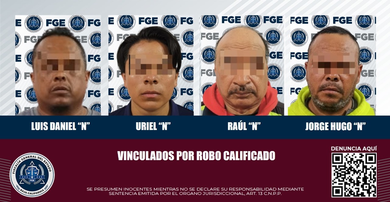 Con base en el trabajo efectuado por personal adscrito a la Unidad de Investigación con Detenido de esta Fiscalía y una vez calificada de legal la detención, un juzgador vinculó a proceso a los de nombre Luis Daniel “N”, Uriel “N”, Raúl “N” y Jorge Hugo “N”, por robo calificado cuando se comete por empleado en empresa donde habitualmente trabaje y por robo calificado cometido por dos o más personas.