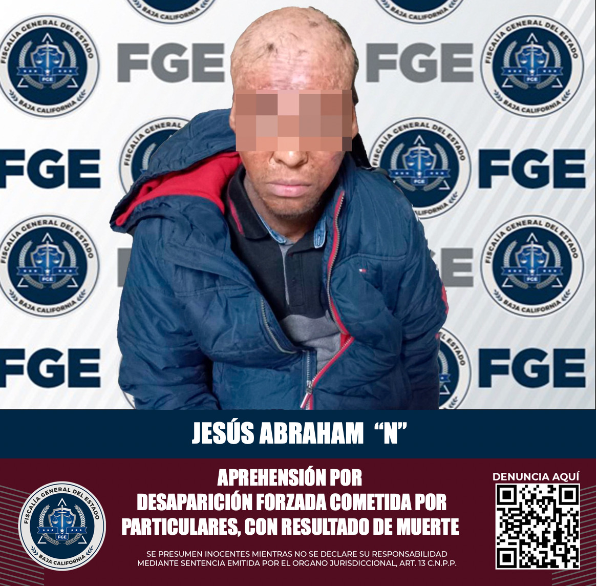 La captura de Jesús Abraham “N”, alias “El Quemado”, se logró con base a los convenios de colaboración entre la Fiscalía General de Baja California con sus homólogas de otras entidades, para la cumplimentación de órdenes de aprehensión pendientes.