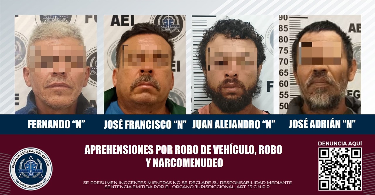 TIJUANA, BAJA CALIFORNIA.- Trabajo realizado en gabinete y campo, permitió a elementos de la Fiscalía General del Estado la cumplimentación de diversas órdenes de aprehensión, por los delitos de robo de vehículo, robo y narcomenudeo.