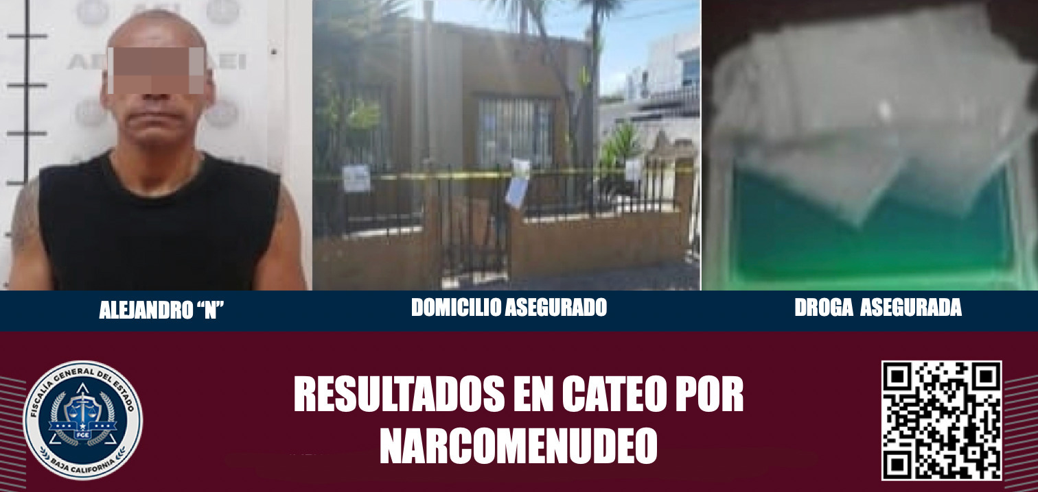 ENSENADA, BAJA CALIFORNIA.- La Fiscalía General del Estado ejecutó una orden de cateo en un domicilio ubicado en la avenida Reforma, entre Águilas y Cortez, en la colonia Hidalgo, logrando el aseguramiento de droga sintética y el arresto de un hombre.