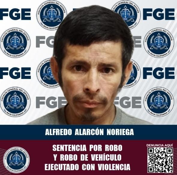 ENSENADA, BAJA CALIFORNIA.- La Fiscalía Regional de Ensenada logró sentencia condenatoria contra Alfredo Alarcón Noriega, acusado de robo y robo equiparado de vehículo ejecutado con violencia.