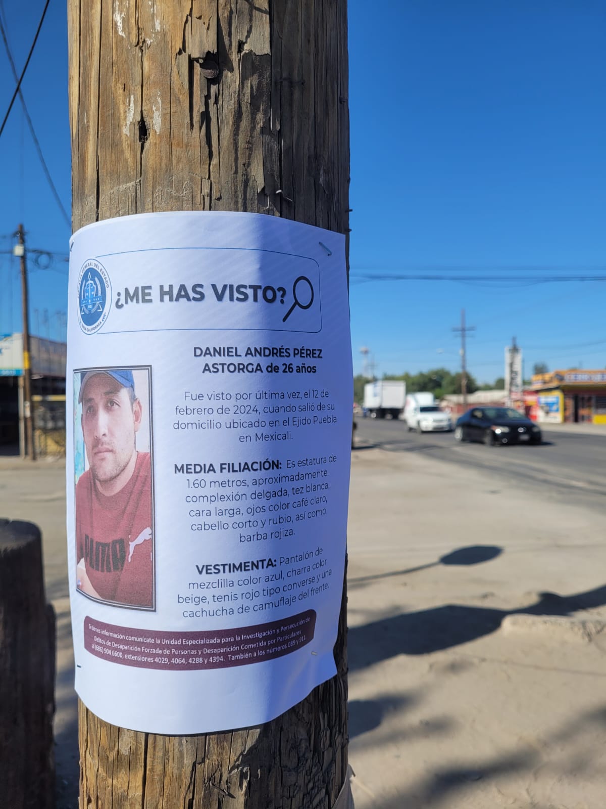 MEXICALI, BAJA CALIFORNIA.- Como parte de las acciones implementadas para fortalecer la investigación por desaparición de personas, elementos de Fiscalía General del Estado desplegaron un operativo de búsqueda de Daniel Andrés Pérez Astorga.