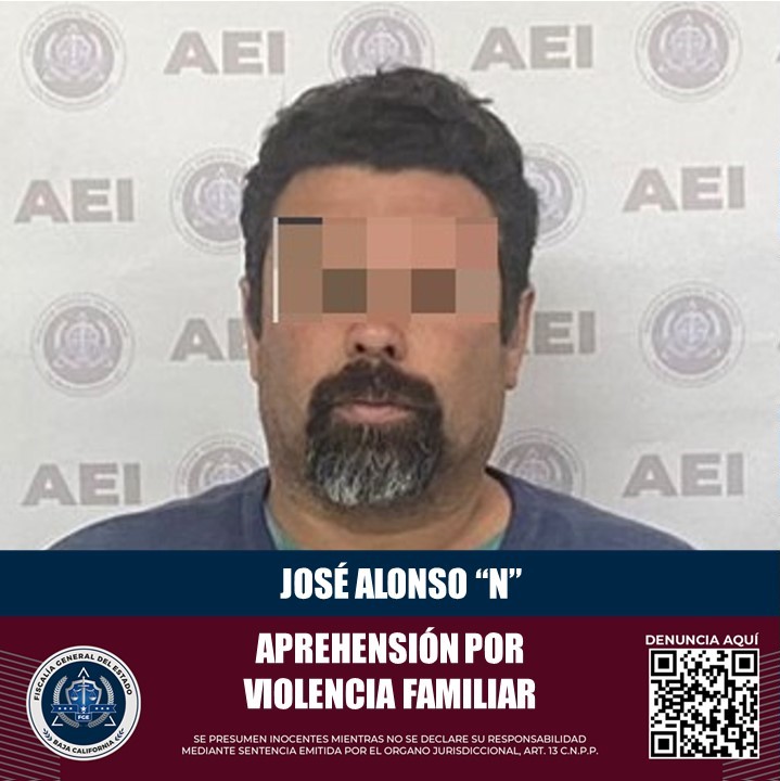 TECATE, BAJA CALIFORNIA.- La Fiscalía Regional de Tecate, mediante labor de la Agencia Estatal de Investigación (AEI), cumplimentó una orden de aprehensión en contra de José Alonso “N”, probable responsable del delito de violencia familiar en modalidad de violencia patrimonial y ataque peligroso.