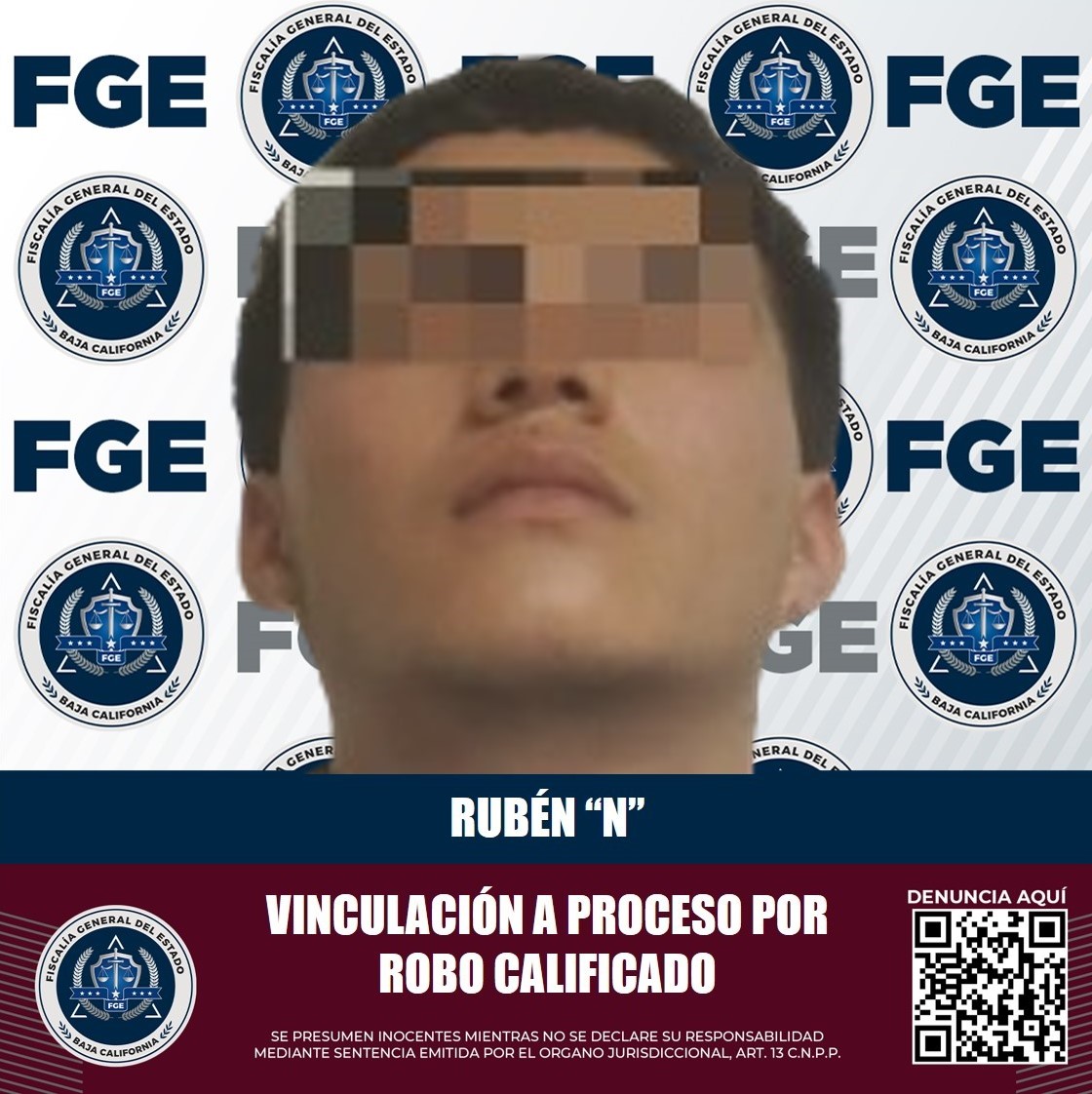 TIJUANA, B.C. La Fiscalía Regional de Tijuana presentó los datos de prueba contenidos en la carpeta de investigación integrada contra Rubén “N” por el delito de robo calificado a establecimiento abierto al público ejecutado con violencia, obteniendo de un juez la vinculación a proceso.