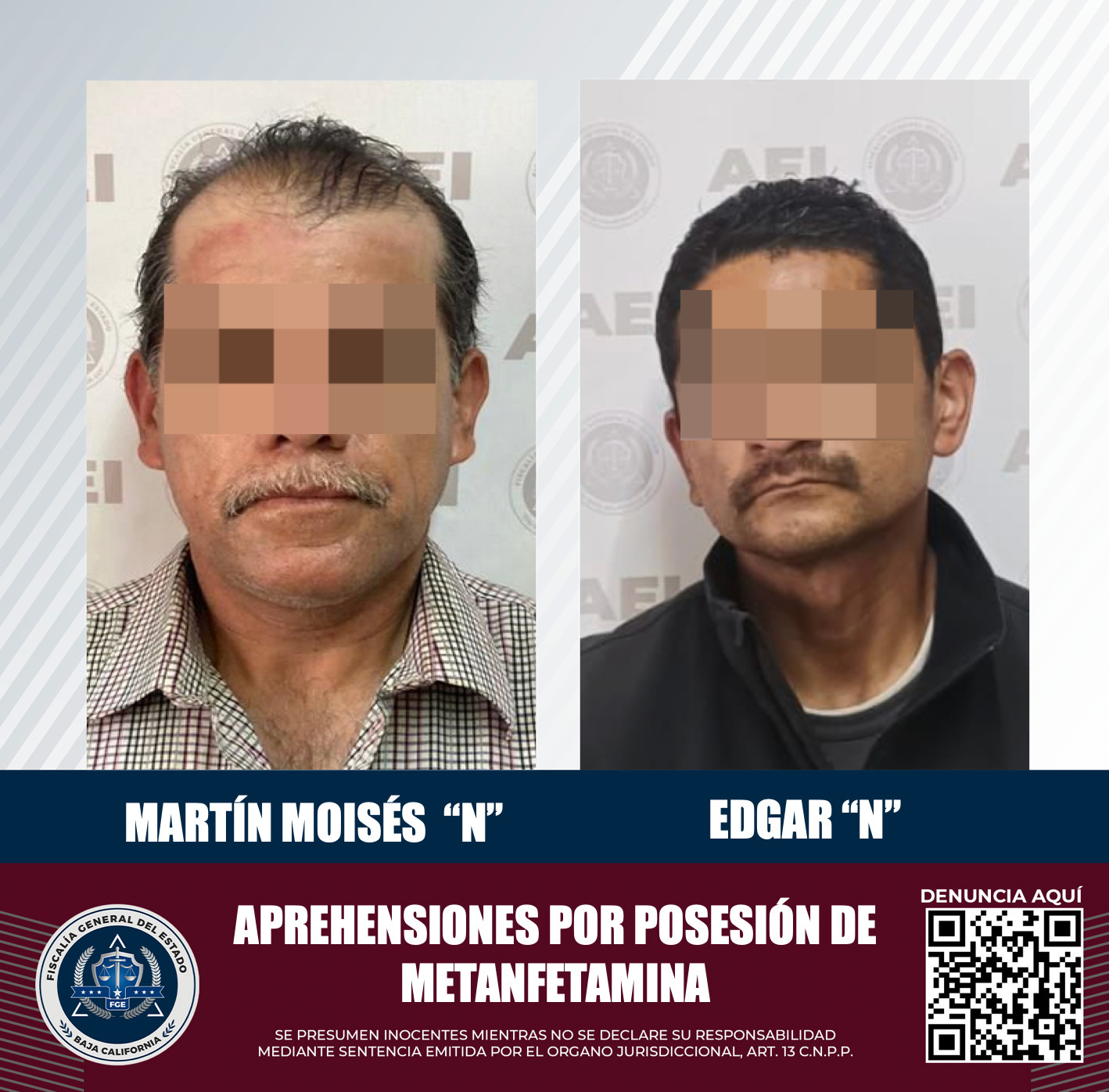 ENSENADA, B.C. En distintos puntos de la ciudad, agentes de la Fiscalía General del Estado realizaron la detención de dos sujetos sobre los que pesaban órdenes de aprehensión por posesión de metanfetamina.