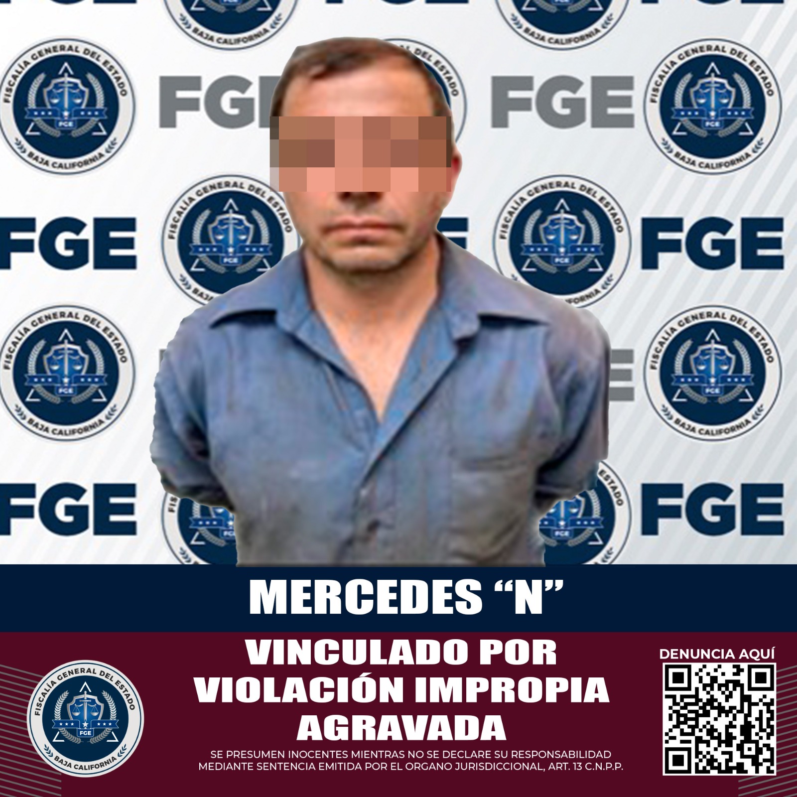 MEXICALI, B.C. La Fiscalía General del Estado, cumpliendo con el compromiso de no dejar impunes actos de violencia en contra de mujeres, niñas, niños y adolescentes, obtuvo la vinculación a proceso en contra de un sujeto acusado de violación impropia agravada.