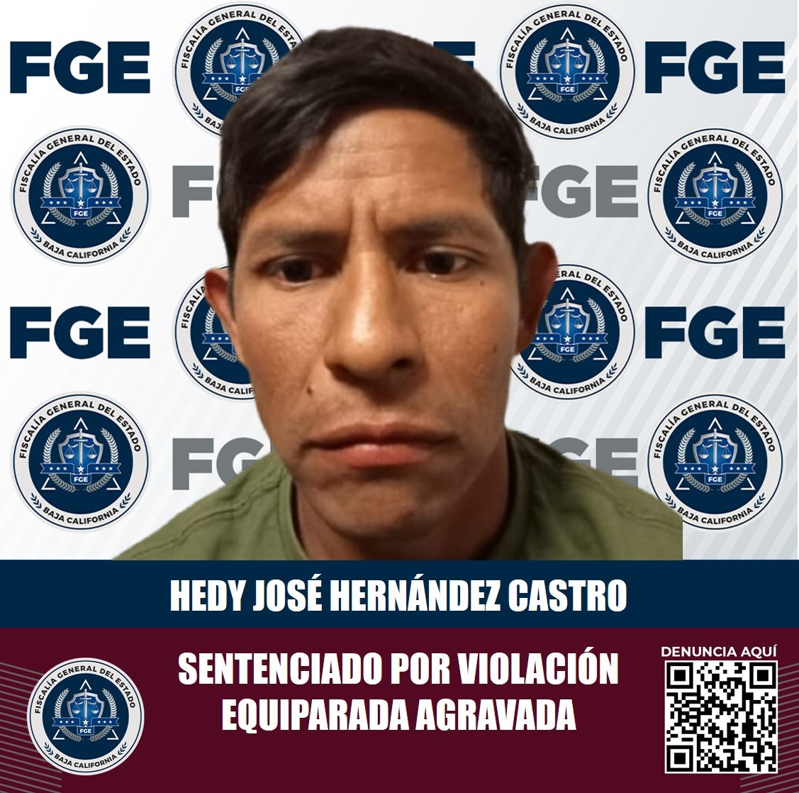 MEXICALI, B.C. Con base a los elementos de prueba presentados por la Fiscalía General del Estado (FGE), Hedy José Hernández Castro, responsable del delito de violación equiparada agravada, recibió un fallo condenatorio, por lo que deberá pasar 10 años en prisión.