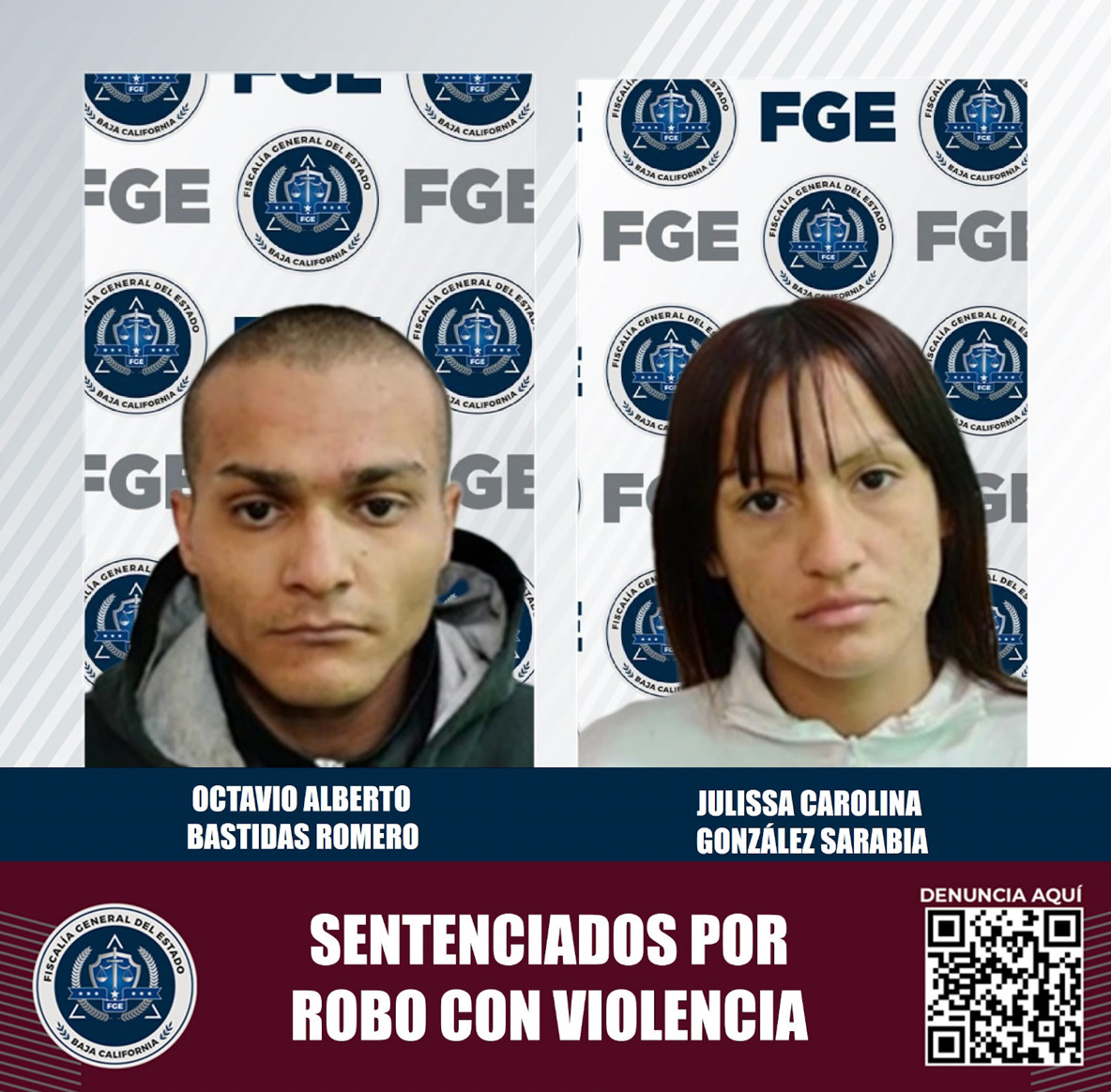 MEXICALI, B.C. La Fiscalía Regional de Mexicali logró obtener, mediante un procedimiento abreviado, una sentencia condenatoria en contra de una pareja responsable del delito de robo calificado cometido a lugar abierto al público con violencia.