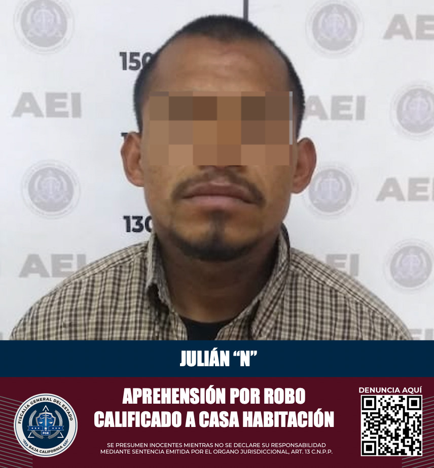SAN QUINTÍN, B.C. Agentes de la Fiscalía General del Estado llevaron a cabo la detención de sujeto en cumplimiento de una orden de reaprehensión por el delito de robo calificado a casa habitación.