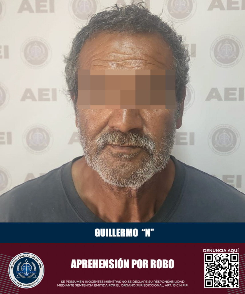 ENSENADA, B.C. Agentes del Grupo Especializado en Aprehensiones, de la Fiscalía General del Estado, capturaron a un hombre que presuntamente robó 65 mil pesos en un negocio donde realizaba trabajos de limpieza.