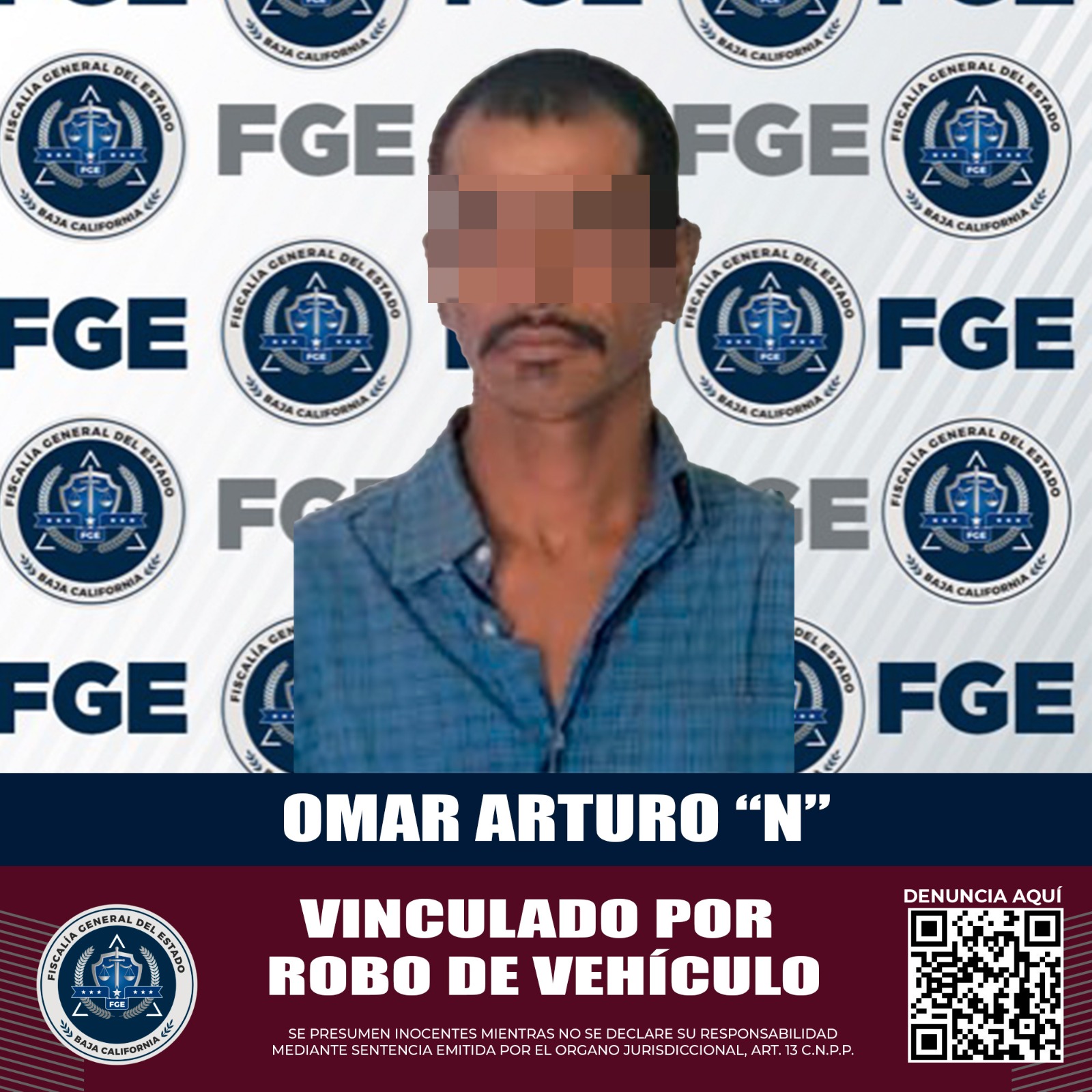 MEXICALI, B.C. Dando continuidad al Operativo Fuerza-Fiscalía Contra Robos, la Fiscalía Regional de Mexicali a través de la Unidad de Investigación de Robo de Vehículo Oriente, obtuvo la vinculación a proceso de un sujeto.