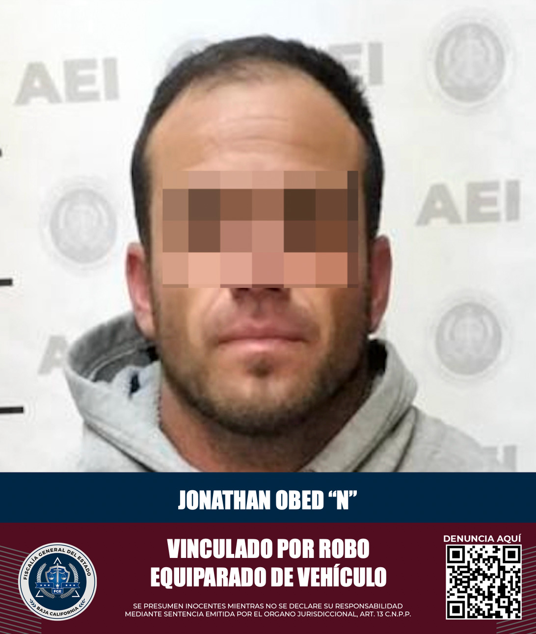 ENSENADA, B.C. La Fiscalía Regional de Ensenada, a través de datos de prueba expuestos por el agente del Ministerio Público, obtuvo la vinculación a proceso de un sujeto detenido el 13 de mayo mientras conducía un automóvil robado el día anterior.