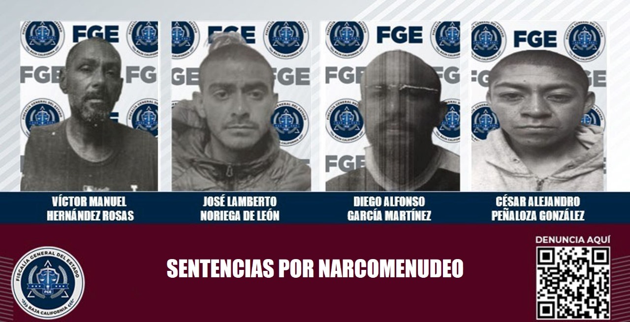 PLAYAS DE ROSARITO, B.C. La Fiscalía General del Estado informó que en cuatro diferentes asuntos por narcomenudeo, igual número de imputados recibieron sentencia por su responsabilidad en esta modalidad de delito contra la salud.