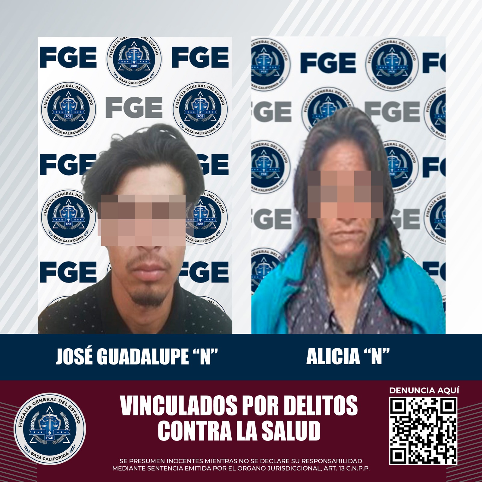 MEXICALI, B.C. La Fiscalía General del Estado (FGE), implementa acciones operativas en contra del narcomenudeo, a fin de sacar de las calles a los individuos que se dedican a la venta y distribución de droga, en esta ocasión, se obtuvo la vinculación a proceso de un hombre y una mujer por delitos contra la salud.